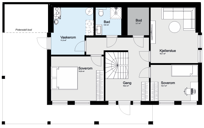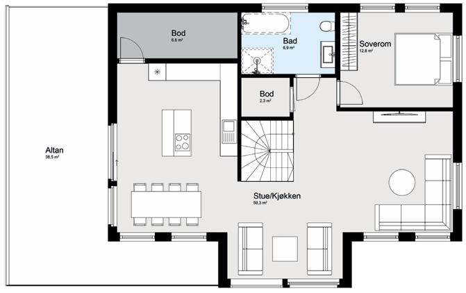 Rørvik er et hus for deg som ønsker det trygge og tidløse, men samtidig setter pris på moderne bokvalitet og gode planløsninger – et hjem som står støtt, både i stil og funksjon.