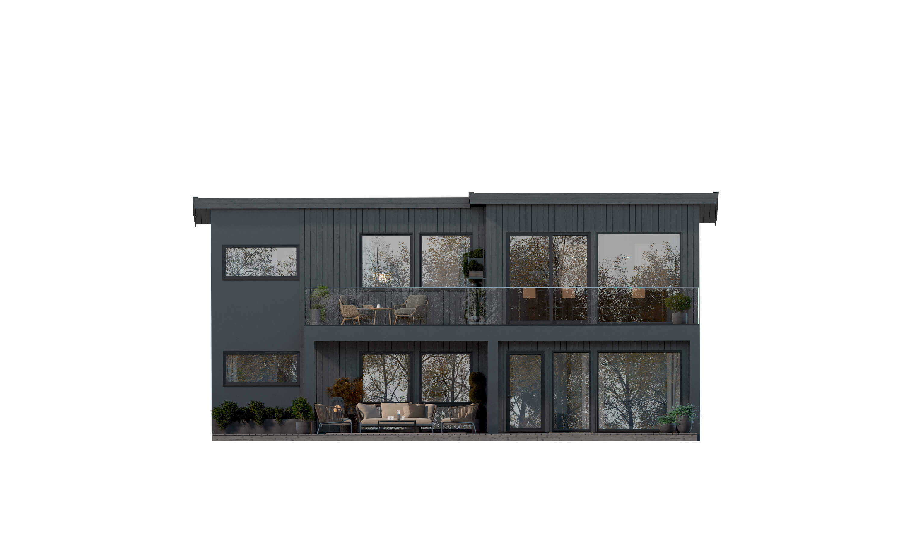 Lisbon er en ekstraordinær funkisvilla hvor ingenting mangler. Boligen kombinerer elementer av tre, fasadeplater og store vindusflater for et moderne uttrykk.