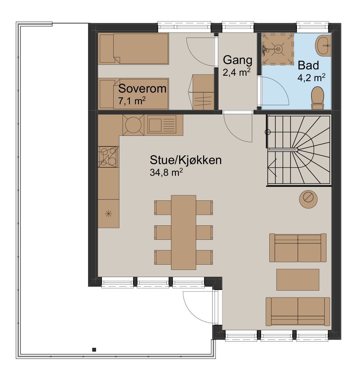 Storefjell er en hyttemodell som egner seg svært godt i rekke, og er designet for å dekke behovet til den aktive familie, året rundt.